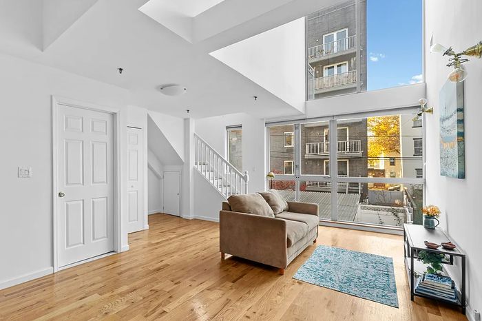 A lot of apartment listings tout “soaring” ceilings, but they’re shrimps compared to this Williamsburg one-bedroom. The “loft-inspired” duplex has 17-foot-high ceilings and oversize south-facing windows that give you a sky view from the living-dining area, which perhaps will help you with feeling something during nightly contemplations. That all flows from the open-concept kitchen, complete with oak cabinets and granite countertops. Upstairs is a sleeping area and a nook that’s currently staged for a home office along with access to your own private terrace, because why not. The monthly taxes and common charges are basically a song — just $353 — and you’re right around the corner from the Metropolitan Avenue G and less than eight minutes from the Commodore for some of the best piña coladas in New York. It’s easy for a building like this to feel dated to a certain kind of white-box, mid-aughts-developer aesthetic, but 30 Devoe seems to pull it off gracefully.