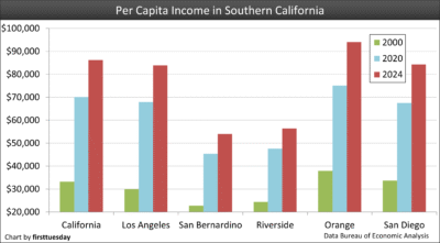 California’s per capita income continued to grow in 2024. Statewide, income in 2024 grew 6.2% over the prior year, a faster pace than the 5.2% annual increase experienced in 2023. This pace of increase follows a pattern of minimal increases o...